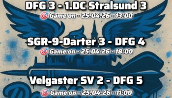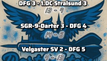 Am Wochenende waren wieder zahlreiche DFGler unterwegs – dieses Mal ging es nach Oelsnitz ins Erzgebirge, wo ein Ranglistenturnier des Deutschen Dart Verbandes auf dem Programm stand. Mit René, Steve, Maximilian, Marc, Domenik, Leo und Lenny machten sich gleich sieben Spieler auf den weiten Weg, um unsere Farben auch dort stark zu vertreten.